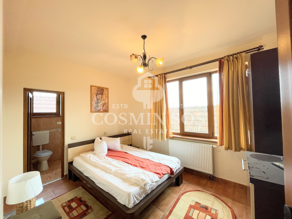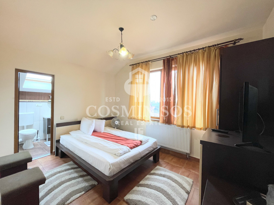 Proprietatea dispune de 8 camere complet utilate, fiecare având baie proprie, asigurând confort și intimitate pentru chiriași. Capacitatea totală de cazare este de 20 de persoane.